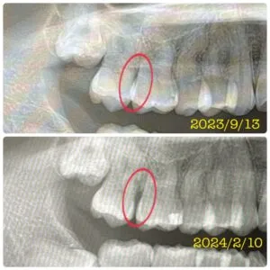 ・写真4枚目の赤⭕️部分は、必要な歯のスペースが確保され、隙間ができている箇所